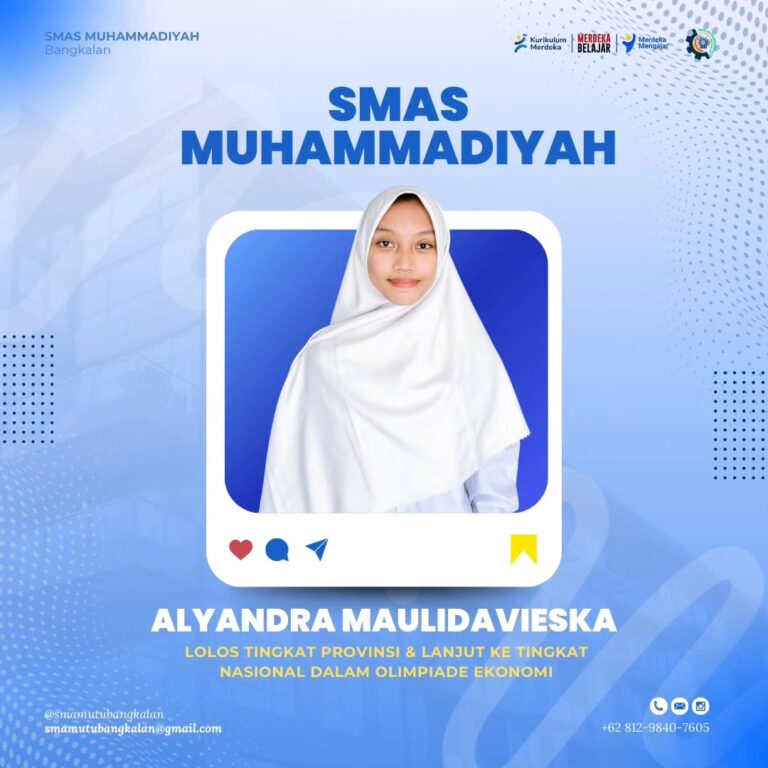 Alhamdulillah ananda Alyandra Maulidavieska, siswa SMAS MUHAMMADIYAH BANGKALAN Lanjut ke tingkat Nasional dalam olimpiade Bidang Studi Ekonomi mewakili Bangkalan.